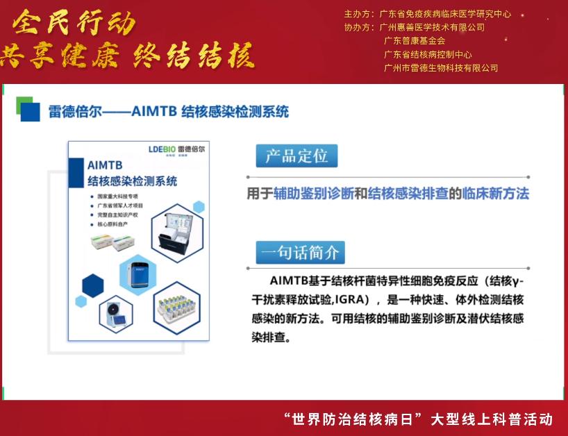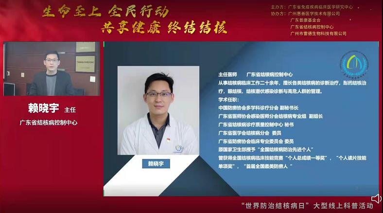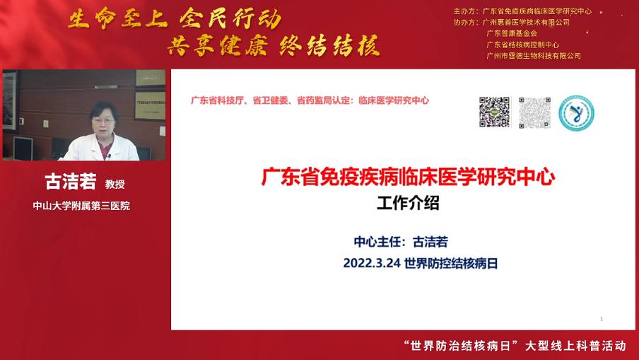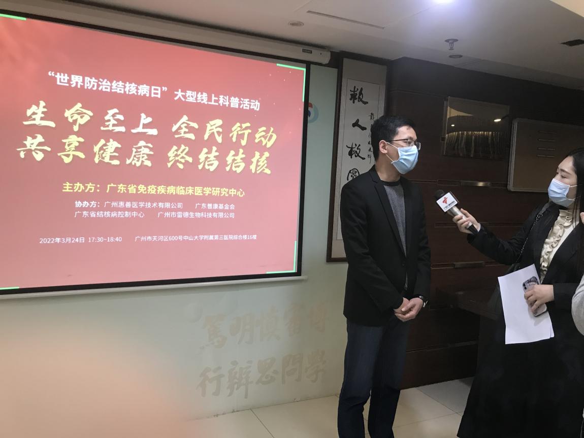 3月24日是第27個“世界防治結(jié)核病日”,今年的主題是“生命至上 全面行動 共享健康 終結(jié)結(jié)核”。為促進公眾對結(jié)核病感染危害及其檢測手段的了解,引導(dǎo)公眾做好疫情期間結(jié)核病的防控工作,2022年3月24日18:00-20:00,廣東省免疫疾病臨床醫(yī)學(xué)研究中心聯(lián)合廣東省結(jié)核病控制中心和廣州市雷德生物科技有限公司開展大型線上結(jié)核防控知識科普和結(jié)核篩查活動。