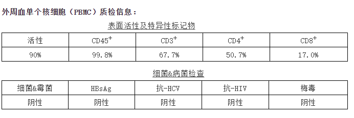 PBMC取自血液制品,按照標(biāo)準(zhǔn)操作流程分離制備,保證不同批次間細(xì)胞質(zhì)量的穩(wěn)定性。建立了嚴(yán)格的細(xì)胞鑒定流程,所提供的原代細(xì)胞均經(jīng)過細(xì)胞類型特異性標(biāo)記物、細(xì)胞形態(tài)學(xué)檢測,保證細(xì)胞純度>95%,細(xì)胞活性>90%;每個批次的產(chǎn)品均經(jīng)過微生物、HIV、HBV、HCV、梅毒等檢測。