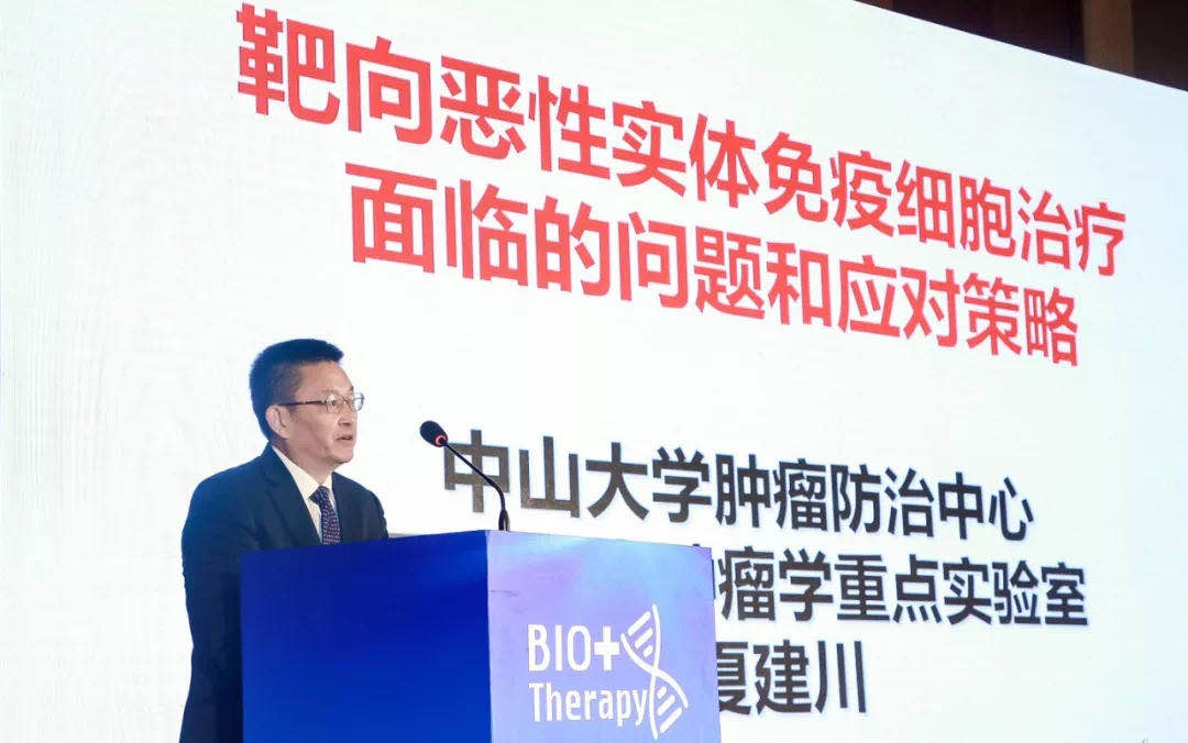 會(huì)議由中山大學(xué)附屬腫瘤醫(yī)院生物治療中心夏建川主任拉開(kāi)腫瘤免疫治療研討會(huì)的帷幕,夏主任提出了靶向惡性實(shí)體腫瘤免疫細(xì)胞治療面臨的問(wèn)題,并提出了應(yīng)對(duì)策略,他認(rèn)為應(yīng)該向增強(qiáng)型免疫細(xì)胞治療技術(shù),單/多靶點(diǎn)免疫細(xì)胞聯(lián)合治療方向進(jìn)行研究,并建議標(biāo)準(zhǔn)化免疫細(xì)胞制備和腫瘤免疫細(xì)胞治療臨床轉(zhuǎn)化規(guī)范。